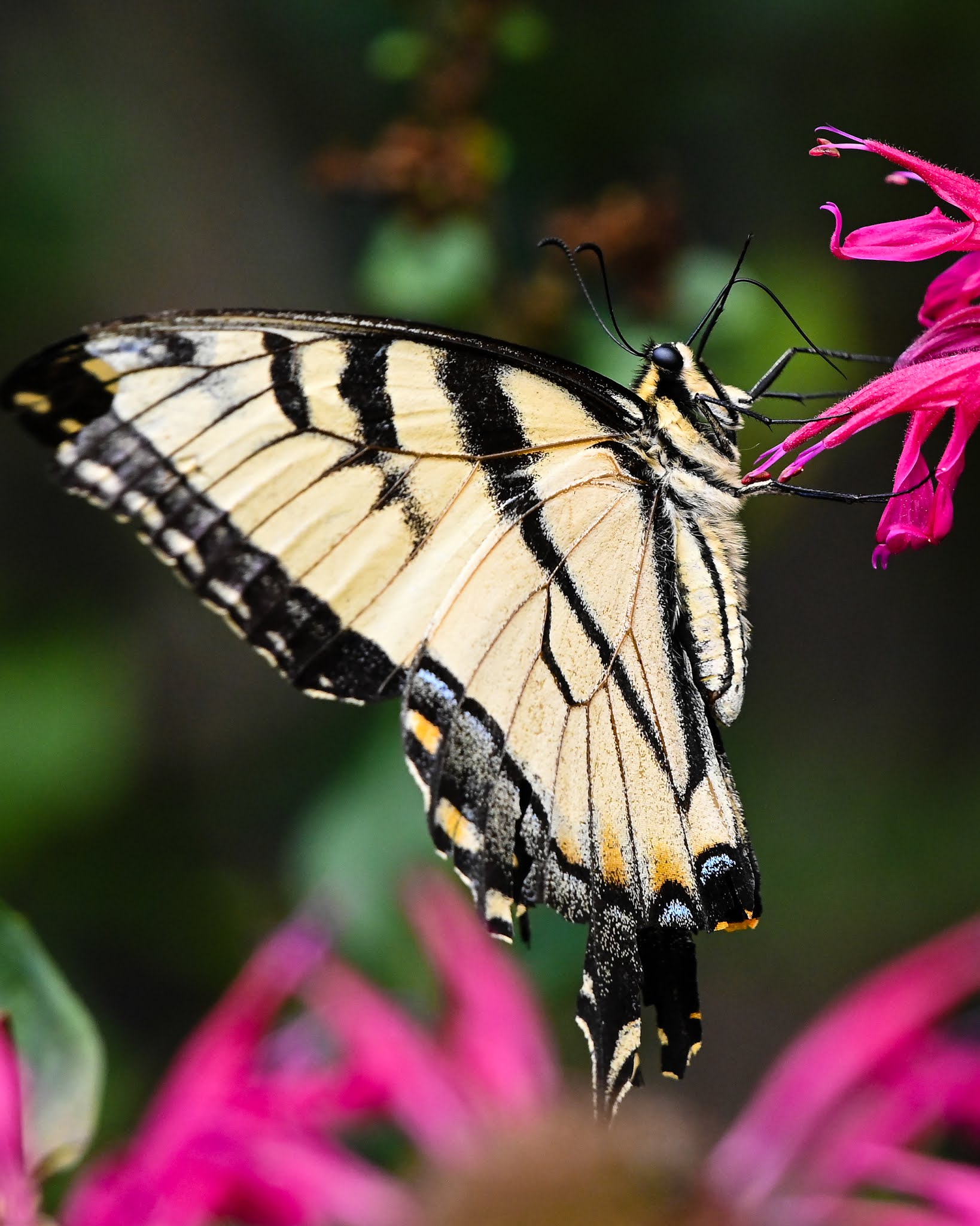 The Eastern Tiger Swallowtail is beautiful but you can tell from the last photo that life is fragile for such delicate creatures...the damage to its wings tells a tale of an insect that must endure some battering to survive through the summer.